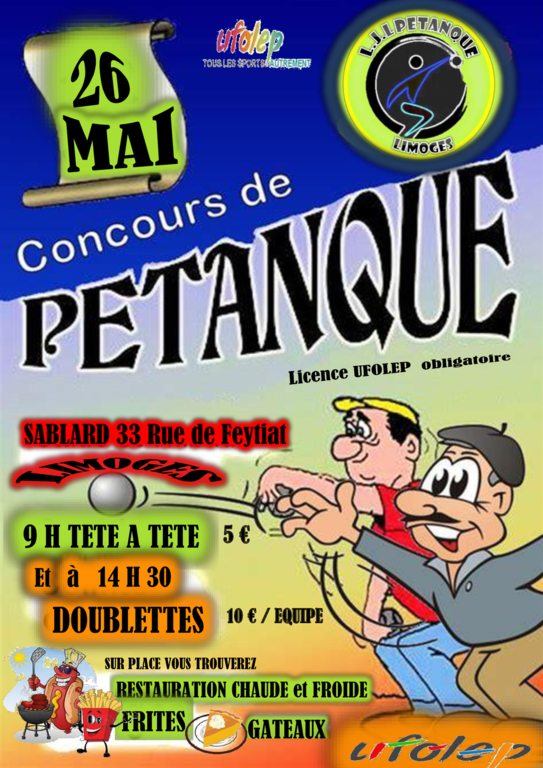 UFOLEP LJL PETANQUE TETE A TETE (9H à LIMOGES LE SABLARD)
