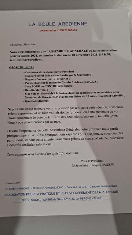 Assemblée Générale de LA BOULE AREDIENNE