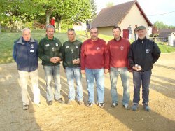 CE DIMANCHE 9 MAI 2010 à ST YRIEIX LA PERCHE la BOULE AREDIENNE ORGANISAIT le REGIONAL UFOLEP. 82 EQUIPES ETAIENT ENGAGEES . 220 REPAS A MIDI. LES RESULTATS __________________________________________________ TRIPLETTE SIMPLE UFOLEP COCHET JP, BRILLAT P,GIRARD DAVID(LANDOUGE: vainqueur 15 A 9 contre GOUTOULE P,NORBERT J,VIGOUROUX JP(ST VIANCE) __________________________________________________ TRIPLETTE VETERANS FABRE R,DELGOULET P,AYMARD JB(ST FEREOLE) vainqueur 15 A 7 contre REY R,PUYRAUD MORILLON(PANAZOL) __________________________________________________ DOUBLETTE FEMININES COMMERGNAT Catheriene ,COUT Sandrine(MARSAC) vainqueur 15 A 12 contre VERGNAUD Micheline,WIASTERSHEIM(BENEVENT) __________________________________________________ DOUBLETTE MIXTE FAURE F.,DA SILVA Laurence(ST FEREOLE) vainqueur 15 A 14 contre BEYSSAC Sylvie,MOUYANNE P(ST FEREOLE) __________________________________________________ TRIPLETTE DOUBLE APPARTENANCE WIASTERSHEIM J,WIASTERSHEIM S,WIASTERSHEIM J(BENEVENT) vainqueur 15 A 8 contre MAUX JEAN YVES VOLONDAT JACKY MARTINS BRUNO(ASPTT GUERET) __________________________________________________ a noter la belle prestation de notre equipe POUYADOUX FRANCOIS CONTE ROGER ET GAUTHIER P qui ne s'incline que 9 a 13 en 1/2 finale du triplette double appartenance.