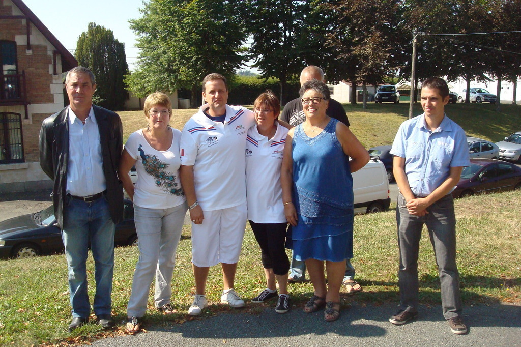En presence de MONIQUE PLAZZI et LAURENT GORYL pour la municipalité, de MME VIGNERON pour le comité UFOLEP et de JEAN MARIE GUIRAUDOU pour la commission pétanque, la présence également d'une trentaine de joueurs de la BOULE. FREDERIC DUBOIS a souligné la fierté de ce resultat pour notre club et la gentillesse de nos deux joueurs, remercié les personnalités presentes. Chacun est intervenu pour feliciter les protagonistes et souligner le dynamisme de notre club . Jean clude CHATEAU precisa également que ce resultat pour notre club né en 1978 est le 3eme après le titre en tete à tete de THIERRY POUYADOUX en FFPJP (2009)et la place de vice-champion veteran de M.LEYSSENNE ,R.CONTE et C.CHAMBORD en 2011.