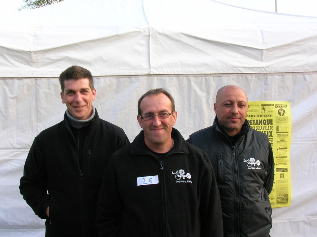 Cette complète, brillante et sympathique équipe du club s'est inclinée en finale du Général contre H. DELAGE-G. PAILLER-C. COUCHET (Arfeuille) sur un coup de dés......... 12-13, après avoir mis impitoyablement au tapis sur leur chemin 2 triplettes du club :