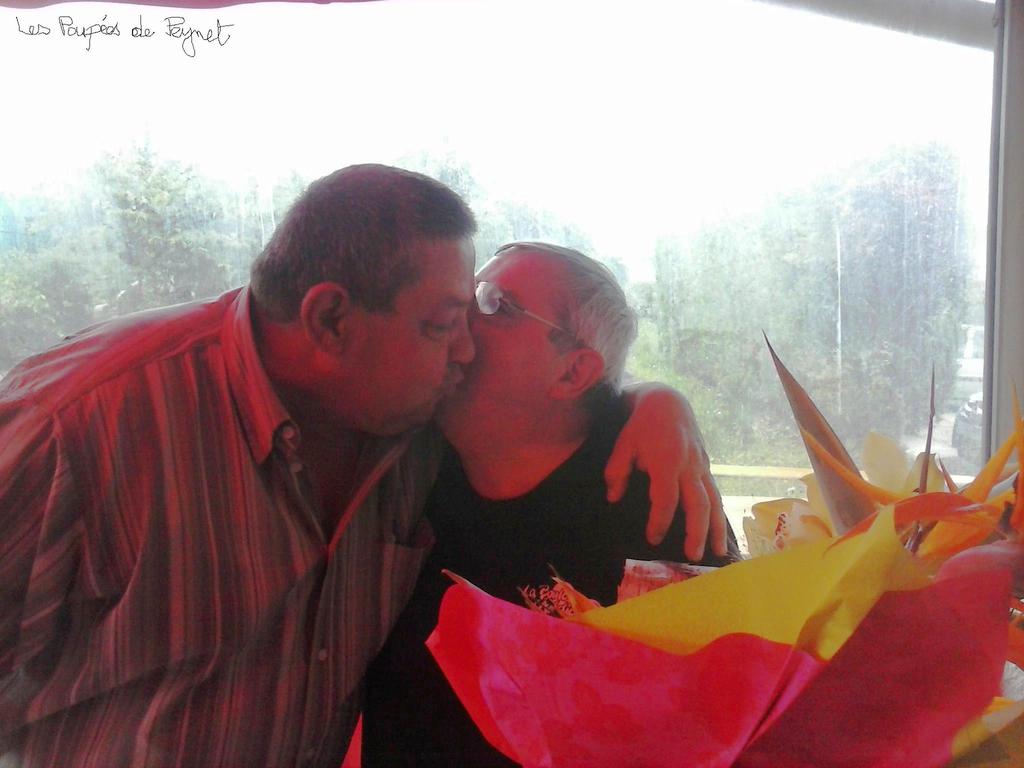 Ivre de bonheur pour son accession à la finale du championnat départemental UFOLEP Vétérans, le vicomte Farmant Paolo le Magnifique laisse éclater sa joie auprès de son prince charmant le duc Palet de la Gravière de Quinsac et lui remet le bouquet de la nouvelle vague qui a secoué dernièrement le paysage des hommes gais et heureux.