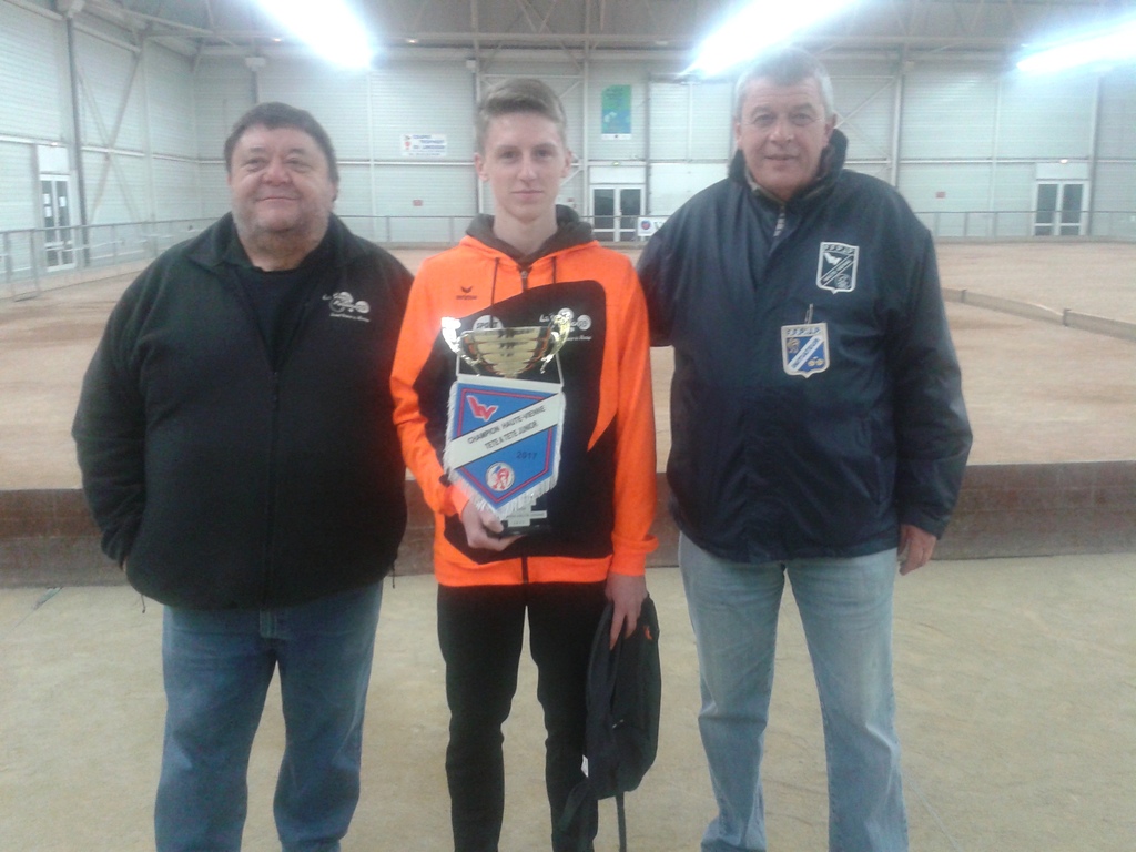 THEO CHARISSOU est devenu ce week end champion départemental tête à tête à LIMOGES. C'est une juste récompense pour ce jeune arédien qui était déjà là lors de la création de l'école de Pétanque. En cadet et en minime, il avait déjà échoué de peu pour le titre suprême. C'était son jour puisque après avoir été poussé à jouer les barrages de poule , son parcours fut par la suite exemplaire jusqu'à la finale ou il évacua parfaitement la pression et s'imposa 13 à 3 contre CINDY RICOU du club de LA JONCHERE. BRAVO THEO