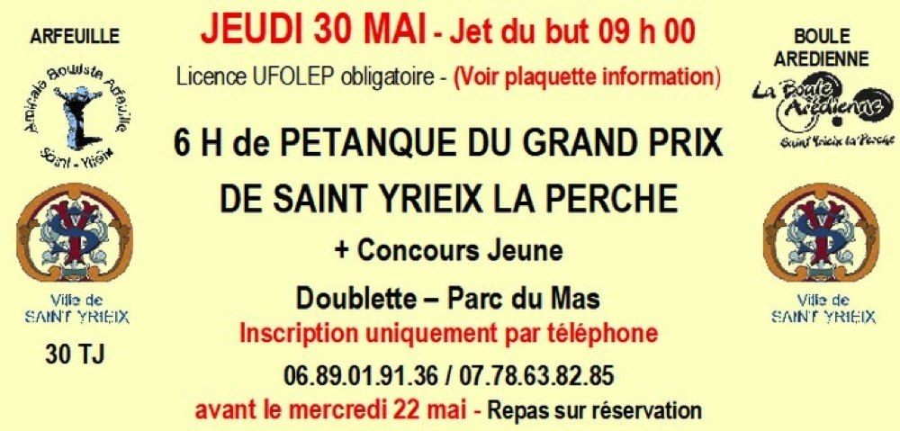 UFOLEP LA BOULE AREDIENNE / ARFEUILLE DOUBLETTE 20è GRAND PRIX DE LA VILLE (PARC DU MAS 9H)