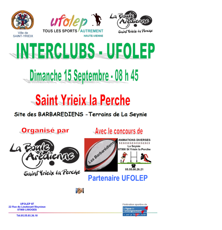 Dimanche 15 septembre 2019, LA BOULE AREDIENNE et notre partenaire de l'UFOLEP 87 Pétanque LES BARBAREDIENS, organiseront L'INTERCLUBS qui clôturera la saison 2018/2019 UFOLEP.