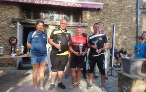C'est vers 18h que l'ensemble des participants se sont vu remettre les récompenses d'une saison écoulée avec notamment la remise des différents trophées pour les challenges. FELICITATIONS à toutes et tous pour votre fairplay, respect et esprit de compétition. BRAVO à tous les champions dûment récompensés pour leurs résultats sur la saison. Le trophée du Challenge Jean-Claude CHATEAU a été remis à l'équipe d'Arfeuille (Hervé DELAGE et Cédric COUCHET)